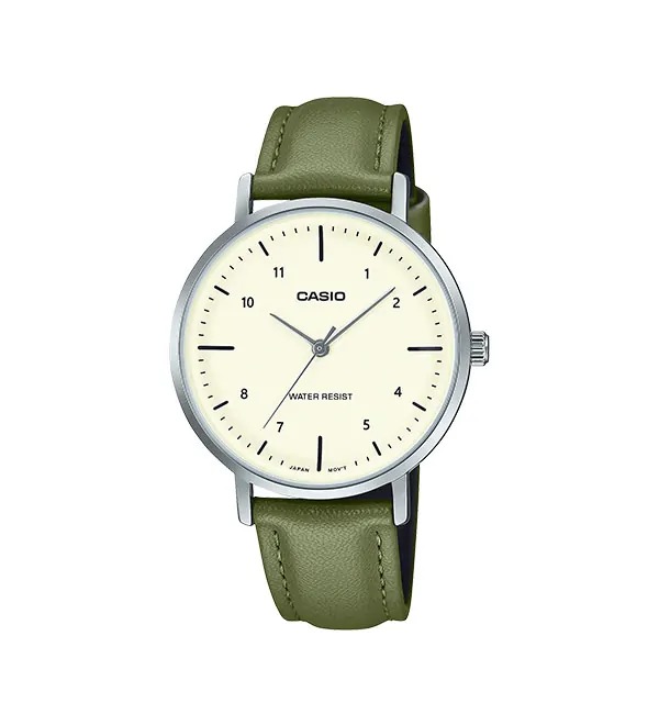 The Casio Analog Standard LTP‑VT03L‑3B offers a clean, modern style that fits every moment of your day. With its slim body, soft leather band, and refreshing green dial, the watch brings a perfect mix of comfort and elegance. Because of its lightweight design, it feels natural on the wrist from morning until night.