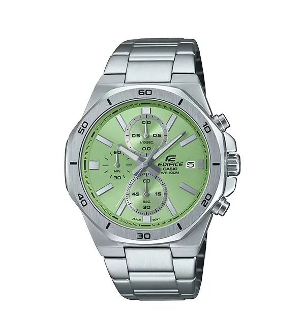 The EFV‑640D‑3AV blends sporty elements with a refined finish. As a result, you can wear it in many situations. It fits well with professional clothing, casual outfits, and even evening attire. The stainless steel build adds a classic touch, while the green dial adds unique personality.