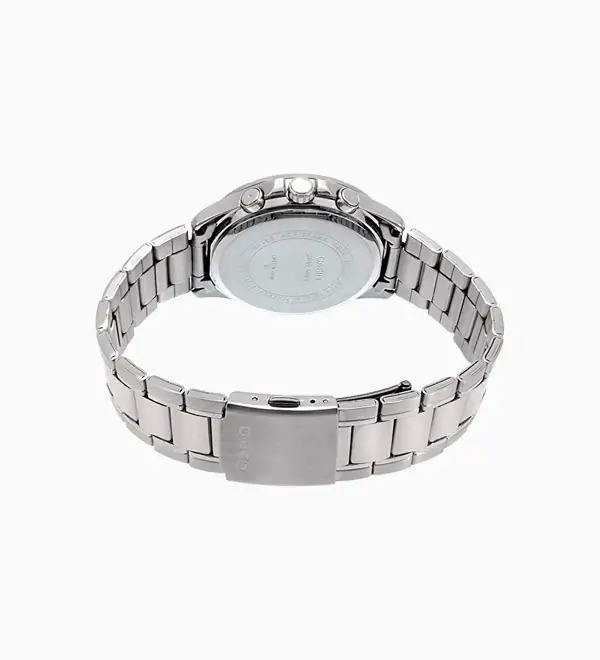 If you want a watch that blends elegance with practical features, the Casio MTP-1374D-2A3V is an excellent choice. It offers a stainless steel build, chronograph dials, and water resistance, making it perfect for men who value both style and performance.